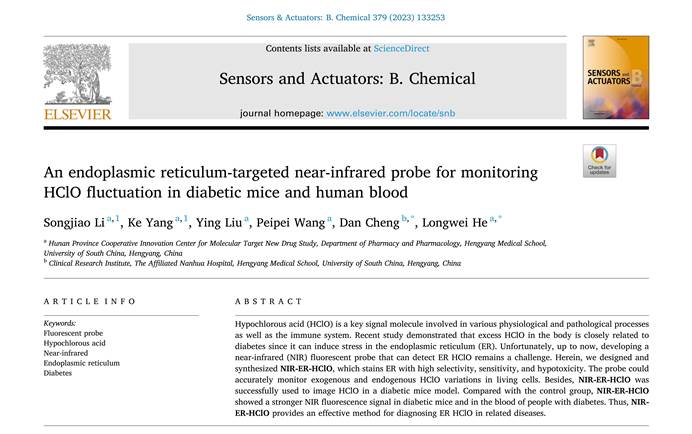 成果三:An endoplasmic reticulum-targeted near-infrared probe for monitoring HClO fluctuation in diabetic mice and human blood