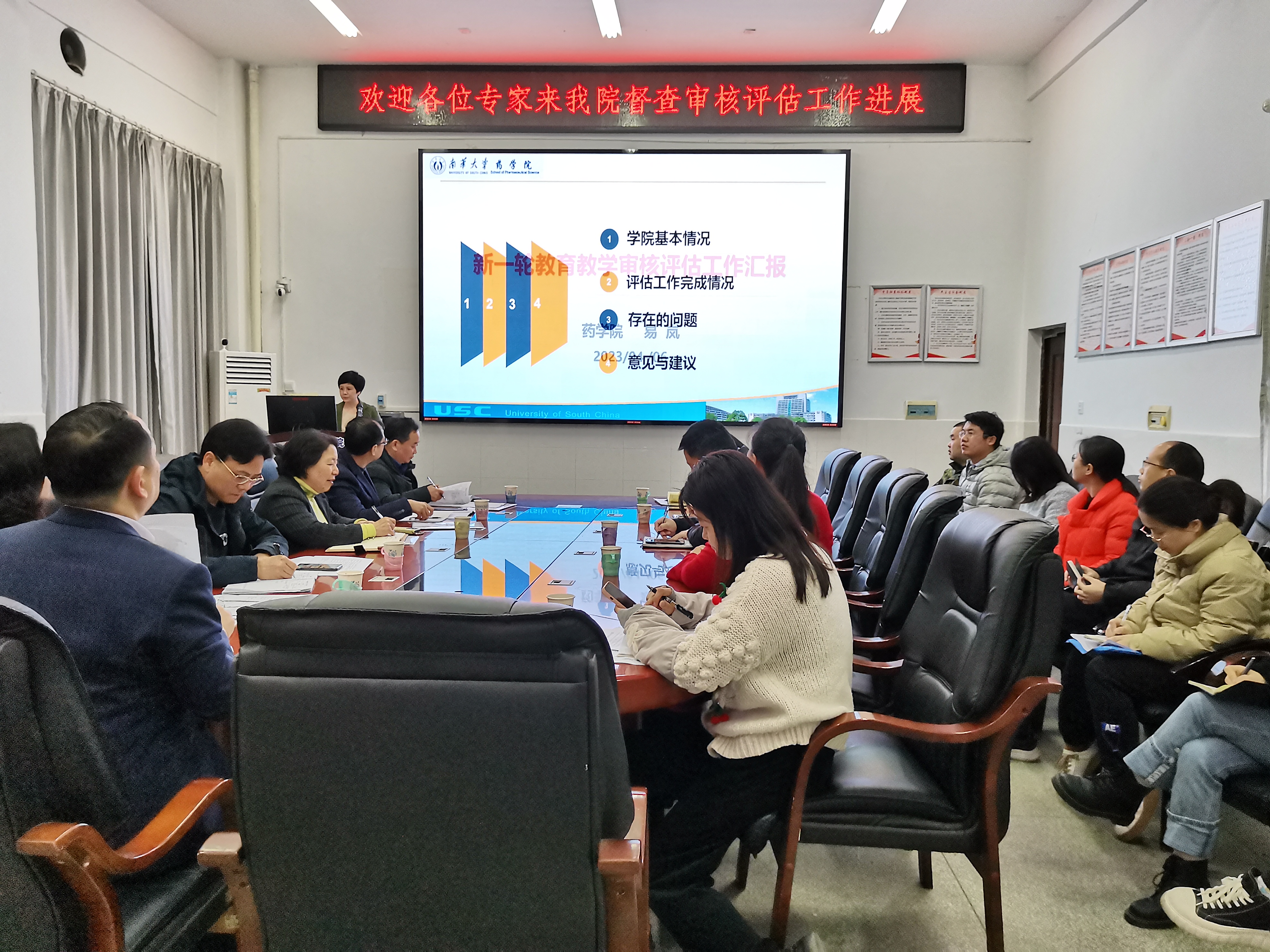 根据学校工作部署,4月6日上午学校审核评估迎评专项督导组与校教学督导团莅临我院,就新一轮本科教育教学审核评估工作对我院进行第一轮督查。药学院院长喻翠云、党委书记袁中华、副院长易岚、党委副书记陈健平、教务办、各教研室中心主任以及部分教师参加了此次大会。