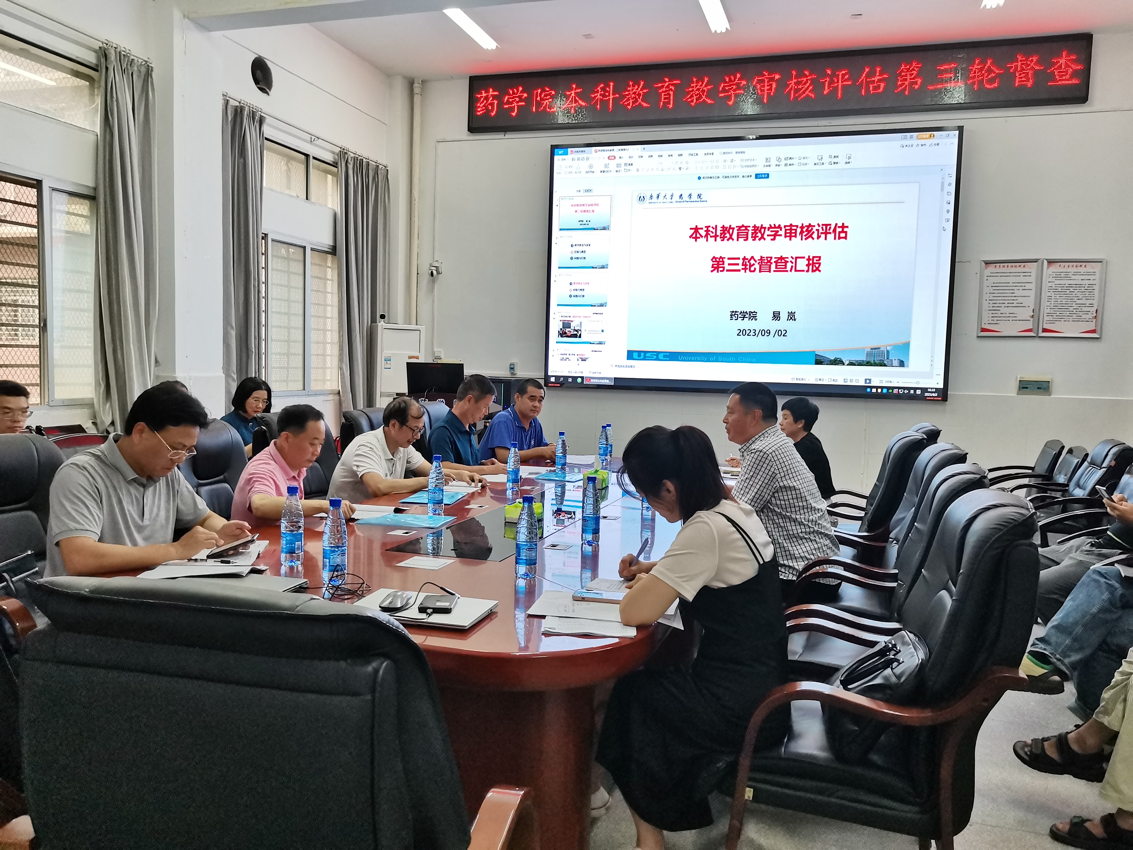 根据学校工作部署,9月2日下午16:30审核评估迎评专项督导组、校教学督导团及教务部负责人莅临我院,就本科教育教学审核评估工作对我院进行第三轮督查。对于此次督查,药学院高度重视,药学院党委书记袁中华、副院长易岚、教务办、各教研室中心主任以及部分教师参加了此次督查。
