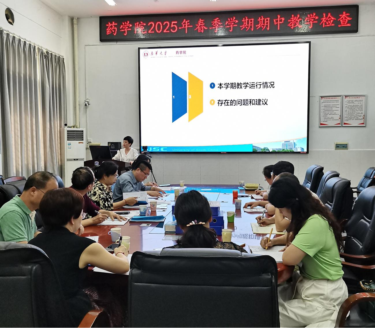 为持续加强本科教学过程管理,建设常态化的教学检查监控机制,5月14日下午,南华大学教务部副部长肖锡林率领校教学督导团杨胜园教授等一行莅临药学院开展期中教学检查。药学院院长王震、副院长易岚、各教研室、中心主任、教务办老师以及教师代表参加了会议。