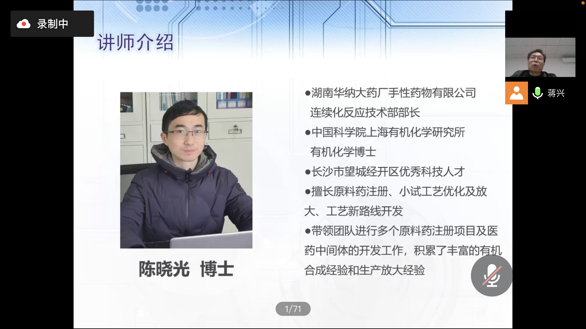 虽因疫情阻隔,讲座只能线上进行,但陈晓光博士依旧热情不减、激情澎湃。他就原料药的发展史、全球原料药市场布局、药物的研发流程以及中国最新的医药政策等方面做了专业解读,使同学们更加切实地了解到当今医药行业现状以及未来发展方向,为同学们今后的职业选择与发展提供了帮助。讲座结束后,同学们就讲座内容、个人学业以及职业发展等方面,与陈博士进行了互动交流。