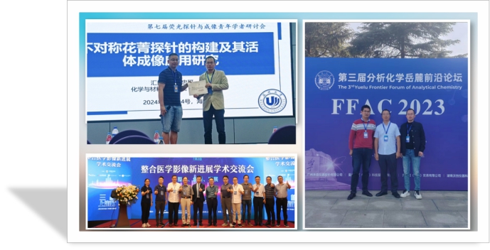 自团队成立以来,积极参与学术交流,全力推进课题组科研建设,提升365英国上市及团队学术影响力。分别参加了第六/七/八届荧光探针与成像青年学者研讨会、整合医学影像新进展学术交流会、分析化学岳麓前沿论坛、第十三届全国化学生物学学术会议等系列重要学术会议,并邀请湖南大学、华中师范大学等学科相关领域的资深专家学者来校做学术报告、指导项目申报和研究生毕业答辩等。