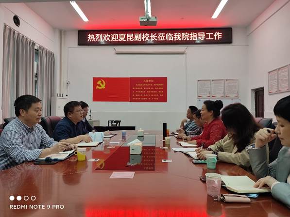 2021年5月17日下午4:30,南华大学副校长夏昆率党委教师工作部副部长袁中华、科研与学科建设部副部长张志军一行来我院调研指导工作。会议在新二教B栋101会议室举行,由药学院院长喻翠云主持。参加会议的有药学院党委书记彭巧云、药学院党委副书记文红志、药学院副院长易岚、湖南省分子靶标新药研究协同创新中心常务副主任王宗保,学院近年引进的高层次人才陈渝萍、魏华、王震、何隆薇、王力立以及药学院各系、室、中心主任及教师代表。