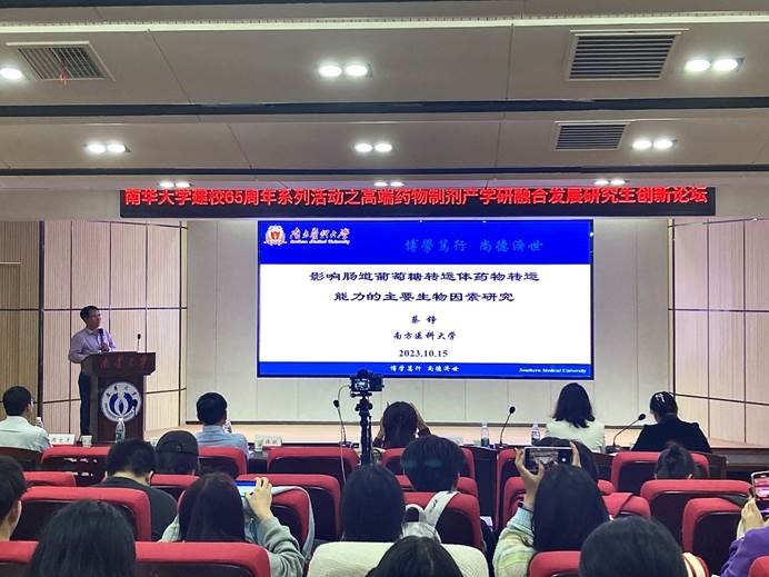2023年10月15日,南方医科大学蔡铮教授应邀来南华大学开展学术交流,并在医研楼一楼学术报告厅以“影响肠道葡萄糖转运体药物转运能力的主要生物因素研究”为题作学术报告。365英国上市党委书记袁中华主持报告会。