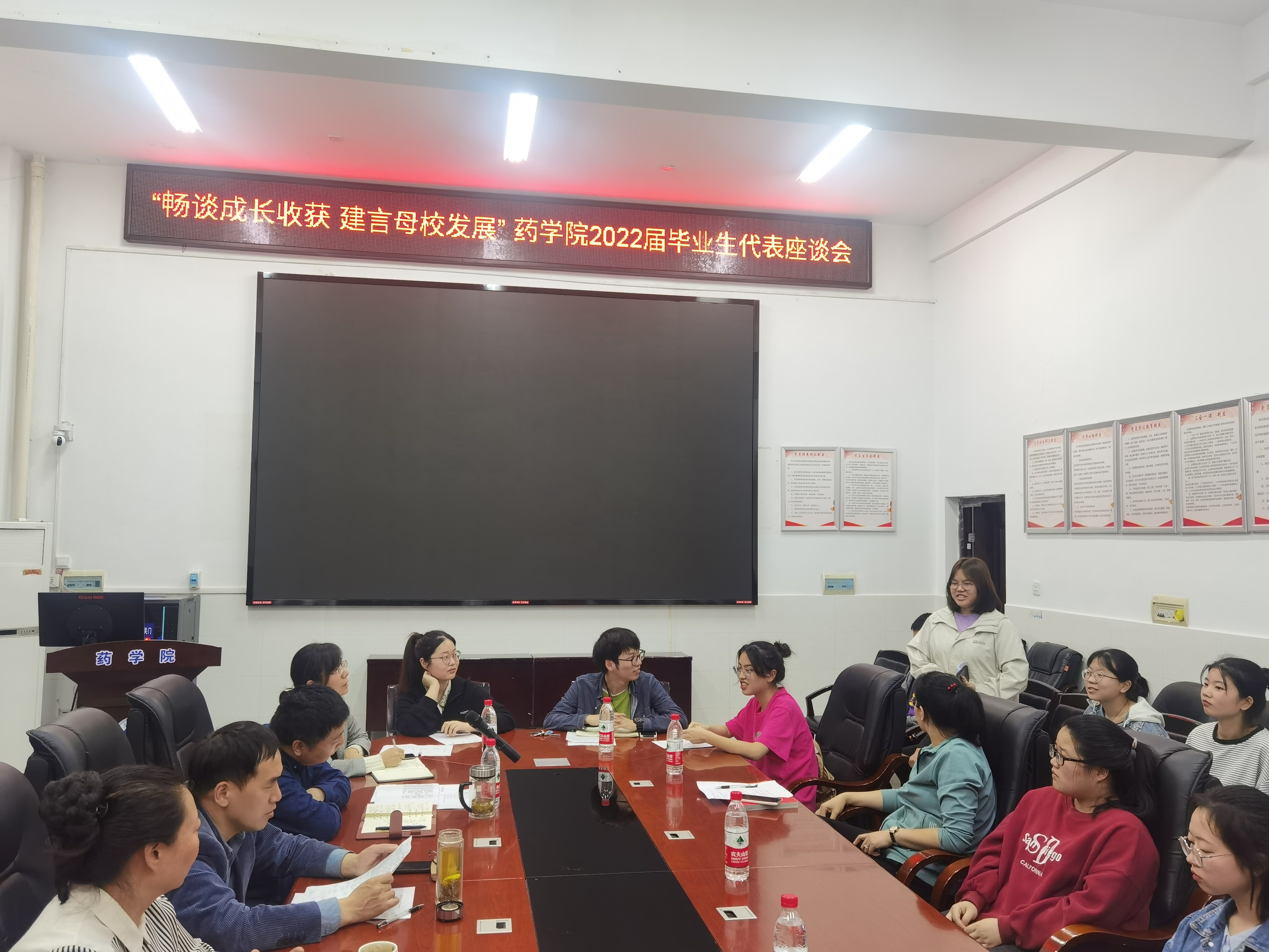 5月20日下午,药学院在药学楼101会议室召开以2022届本科毕业生代表座谈会,南华大学党委委员、副校长雷小勇应邀出席并讲话,药学院党委书记袁中华、院长喻翠云、党委副书记陈健平以及学工室全体辅导员、毕业班班主任代表、毕业生代表等近30人参加座谈会,座谈会由袁中华主持。