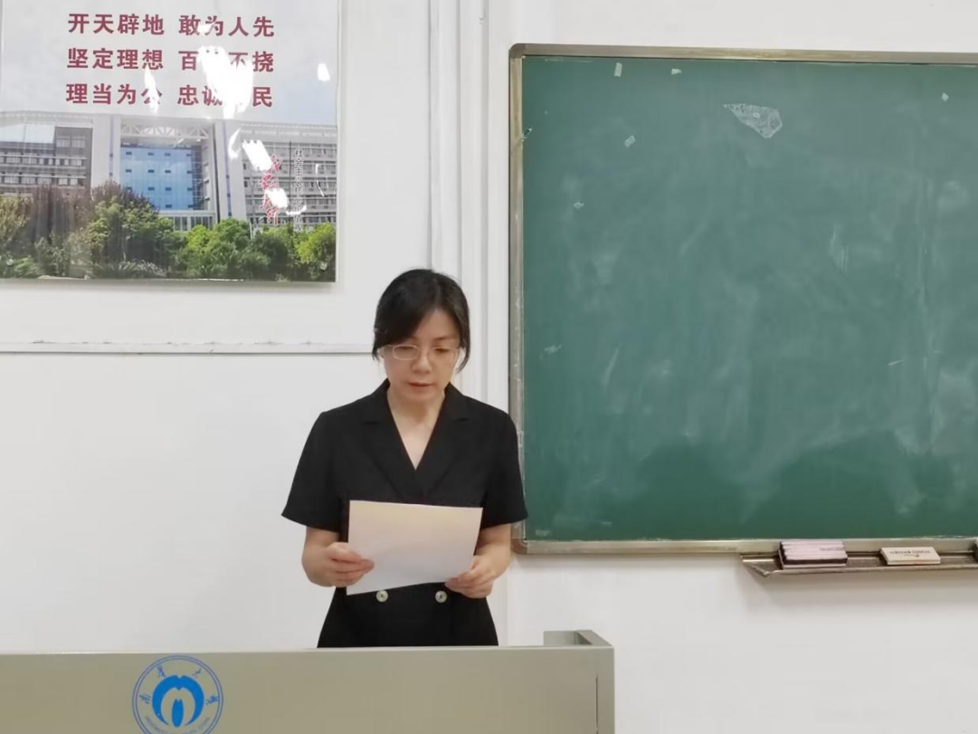 随着庄严肃穆的国歌响起,本次结业典礼正式开始。首先,彭翔就培训工作特色和培训效果两方面对培训班的开展情况进行了总结,指出,培训班在学院党委周密安排下圆满完成了培训任务,其中袁中华、喻翠云、陈健平等院领导为学员们讲授党课,引领学员们深刻学习领会习近平新时代中国特色社会主义思想,强化理论素养,坚定理想信念。接着,陈健平宣读优秀学员表彰决定,本次培训共90人顺利结业,经小组选拔、院分党校推荐、校党校审核,其中章陈晶,何雨佳等9名学员获入党积极分子优秀学员称号。随后,章陈晶作为入党积极分子优秀学员代表发言,分享了她在党校学习的心得与感悟,以及对未来的规划。