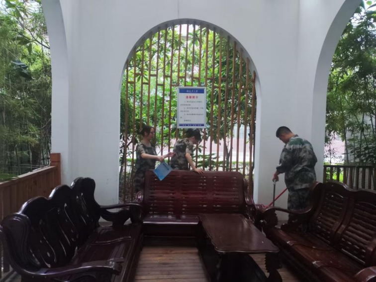 活动在药学楼及室内体育馆附属绿地、国防生运动场进行,23级新生志愿者积极参与其中,他们手持扫把、抹布等劳动工具,认真清扫地面污渍,消除边角处卫生死角,清理花坛落叶,共同营造干净、整洁、舒适的校园环境。