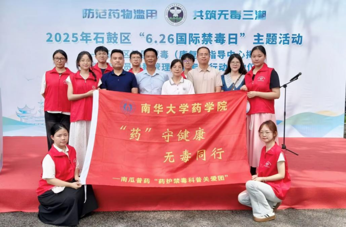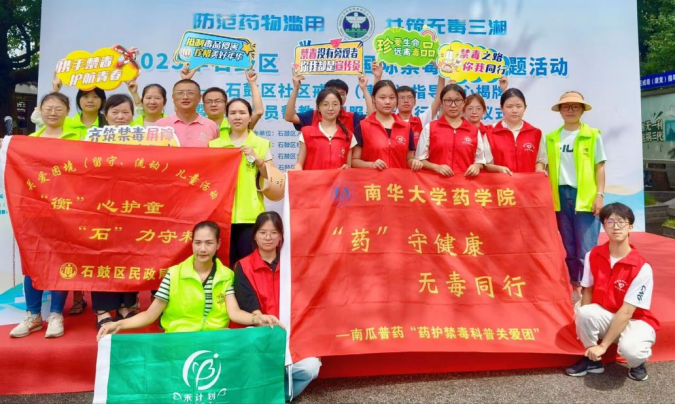 6月25日,在第38个国际禁毒日到来之际,南华大学南瓜普药“药护禁毒”科普关爱团联合石鼓区社会化禁毒事务中心,在衡阳市石鼓区合江街道七里井社区开展“药”守健康·无毒同行禁毒科普专项行动,通过“专业科普+互动实践”模式,普及禁毒知识,助力防范药物滥用、无毒社区建设。当天,活动同步见证了石鼓区社区戒毒(康复)指导中心揭牌。