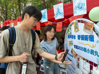 药学院特别策划“药声情长,寄语新程”主题活动,以创新形式迎接2025级新生。活动现场精心布置的明信片墙成为亮点——墙上陈列着2025届毕业生录制的有声祝福卡片,新生只需轻扫卡片上的二维码,便能聆听学长学姐们饱含温情的录音、视频或文字,跨越时光的对话在耳畔回响。许多新生在明信片墙前驻足留影,用镜头定格下踏入南华大学的第一张青春纪念照,笑容与期待在画面中交织。