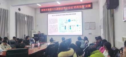2025年11月24日上午,南华大学第十九届研究生楚岳节“药苑先锋・激荡学术思维”分论坛决赛在药学楼101报告厅圆满收官。这场由南华大学党委研究生工作部、研究生院主办,药学院承办的学术盛宴,以“创新·互鉴·致远”为主题,通过PPT汇报的形式,为南华研究生搭建一个展示科研成果、激发学术思维的竞技舞台。