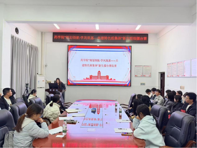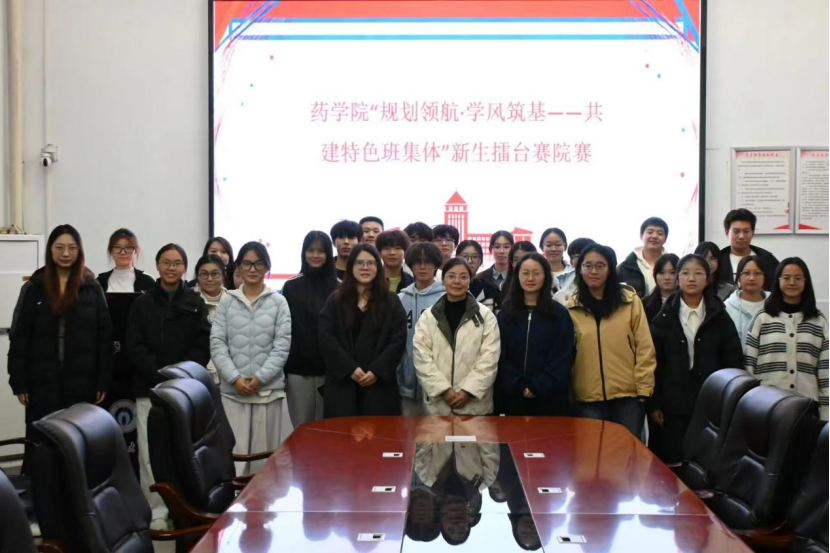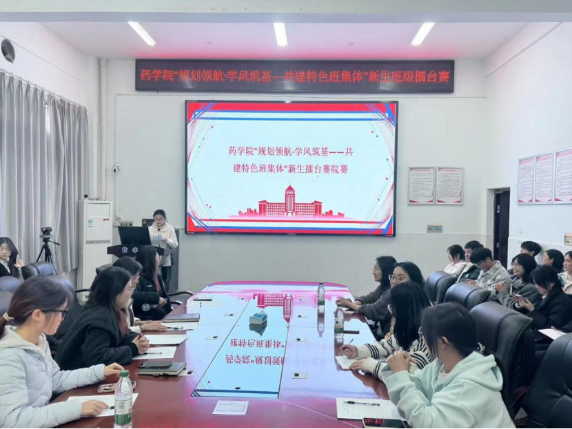 为推动新生班级建设,夯实学风基础,提升班级凝聚力与创造力,引导新生班级明确发展目标,形成具有专业特色的班级规划,增强班级凝聚力、组织力与团队协作能力,药学院特于11月21日在药学院104举办“规划领航·学风筑基——共建特色班集体”新生擂台赛,让各班用创意与思考描绘班级未来的模样,营造“以赛促建、以赛促思”的良好学风氛围。院党委副书记陈健平、学风专干李馨然老师及25级班主任应邀出席观摩指导。