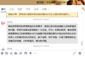 此外,陈叶辉、王宗保等老师也逐一发言。大家一致表示,作为高校教师,我们时刻把全面贯彻党的教育方针,落实立德树人根本任务放心中,解放思想、实事求是,在教学上不断探索形式多样、行之有效的教学方法,在科研上敢于创新、打破瓶颈,将科学研究与教学有机融合,努力为国家培养高水平人才。