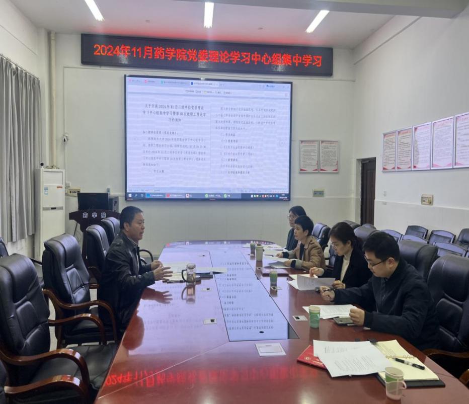 按照南华大学2024年党委理论学习中心组学习计划,药学院于2024年11月29日上午在药学院B101会议室举行11月中心组集中学习。