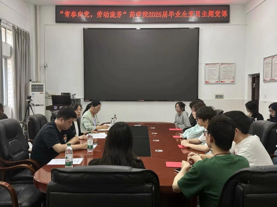 5月29日,药学院2025届毕业生工作会议上,院党委副书记陈健平以“青春向党·劳动流芳”为题给毕业生党员讲党课,号召全体毕业生党员在离校前带头开展最后一次劳动实践,用汗水擦亮青春底色,彰显党员先锋本色。