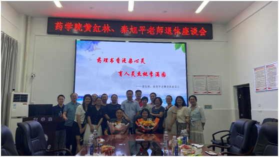 退休不褪色,薪火永相传。6月16日下午,药学院在药学楼B101会议室召开退休座谈会,祝贺药理学教研室黄红林和秦旭平两位老师光荣退休。学院党委书记袁中华、院长喻翠云、副院长易岚、党委副书记陈健平,药理学教研室全体教师及药学院各系室同事代表参加了座谈会。座谈会由易岚主持。