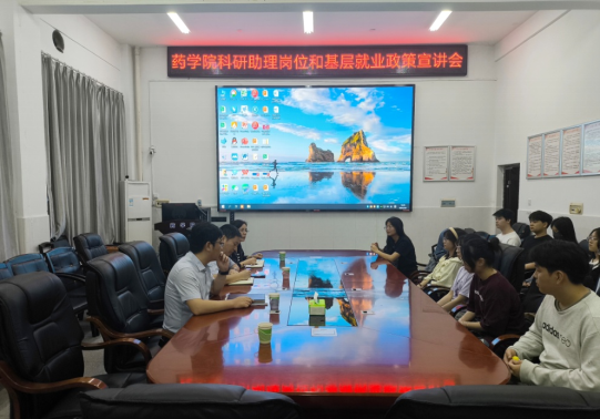 5月9日下午,药学院在药学楼101会议室召开科研助理岗位和基层就业政策宣讲会。宣讲会由药学院院长王震主讲,面向拟继续学习深造、求职中的2024届本科毕业生和研究生毕业生进行。学院党委书记袁中华、党委副书记陈健平以及就业专干、毕业年级辅导员等出席宣讲会。宣讲会由陈健平主持。
