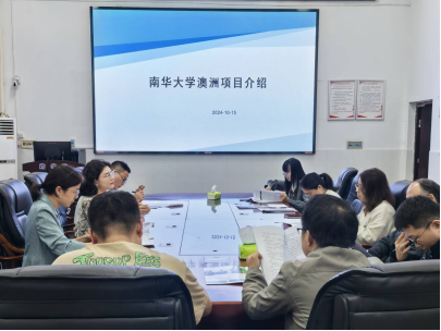 10月16日上午,药学院邀请到南华大学澳洲留学项目负责人来院就阿德莱德大学(南澳大学)留学项目进行座谈交流。座谈会在药学院101会议室举行,院党委副书记陈健平、全体辅导员、2024届毕业班班主任等参加座谈。
