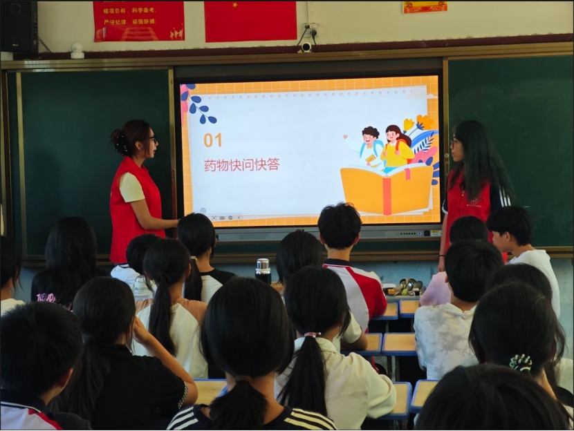 而在“无毒青春”主题教育中,“药守健康”实践团通过“伪装毒品”案例讲解、互动问答,为学生筑牢“防毒拒毒”防线。“原来‘糖果’‘饮料’里可能藏着毒。我以后再也不接陌生人的零食了!”刘子玉的话,让实践团团员们找到坚持科普的意义。
