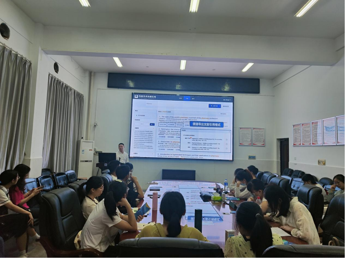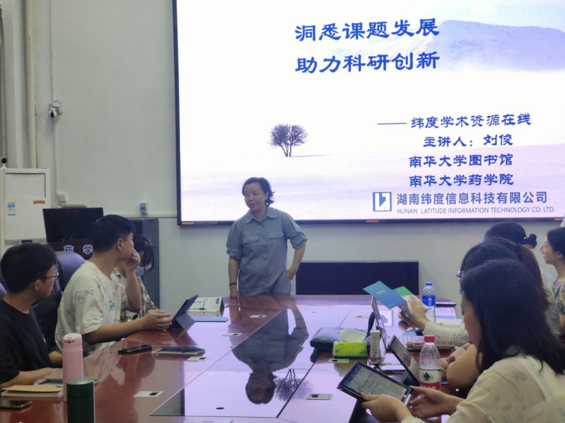 工欲善其事,必先利其器,为提高学生的文献检索能力,365英国上市于2022年11月12日在药学楼B101开展题为“洞悉课题发展,助力科研创新”的主题讲座。本次讲座由湖南纬度信息科技有限公司刘俊讲师担任主讲人,南华大学图书馆信息部龙颖主任主持,药学院硕士研究生30余人参与讲座。