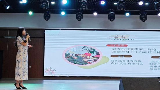 首先21名选手依次上台介绍,他们分别就体姿、社交、舞会、餐桌等礼仪为现场同学进行逐一介绍。每位选手都对礼仪有着独到的理解,他们有的侃侃而谈,仿佛与古人君子席地而坐,以茶文化带领观众走过时间的长河,感受中国礼仪文化的源远流长;有的化身现代精英,为观众讲解干练的现代商务、乘车礼仪,展示中华礼仪与现代社会相交融所迸发的崭新活力。